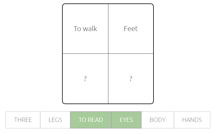 Durante il test verbale, al candidato viene chiesto di scegliere due parole tra sei che insieme formano un'analogia con altre due parole. Questa capacità verbale e analitica è importante per le posizioni di lavoro che richiedono capacità di ragionamento verbale e/o scritto.